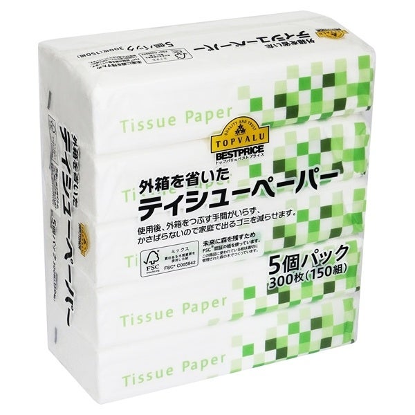 第2位:トップバリュベストプライス 外箱を省いたティシューペーパー