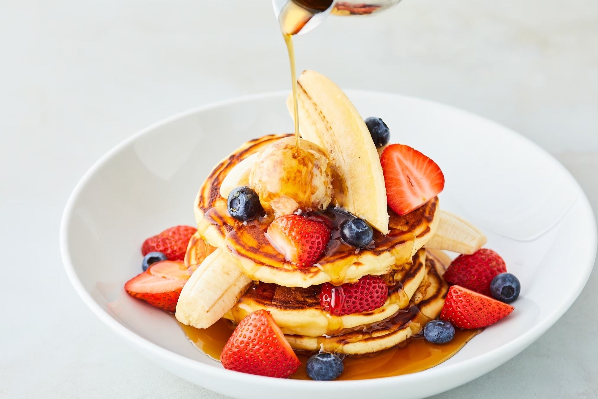 HERSHEY’Sのミルクチョコレートをたっぷり使用した、チョコ好きにはたまらないプレミアムなチョコバナナパンケーキ。