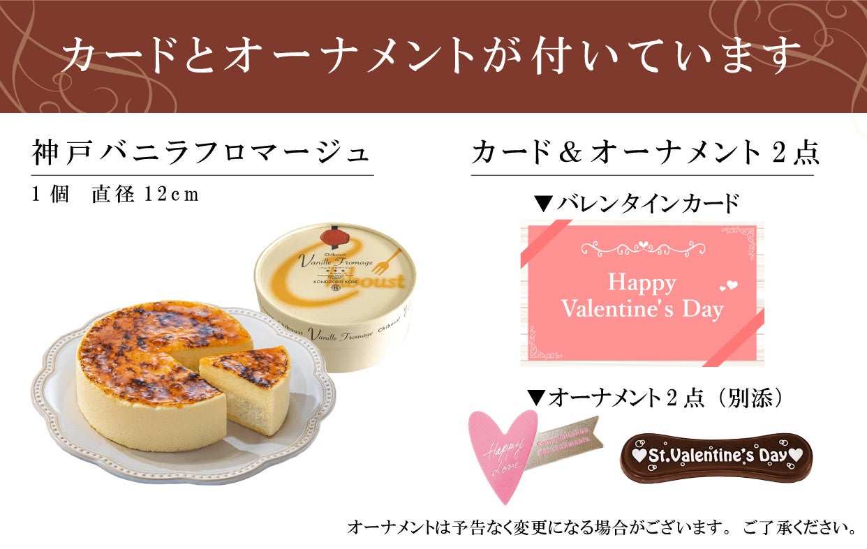 ■お届け内容:神戸バニラフロマージュ(1個 ) ※Valentineオーナメント2点&カード付き
