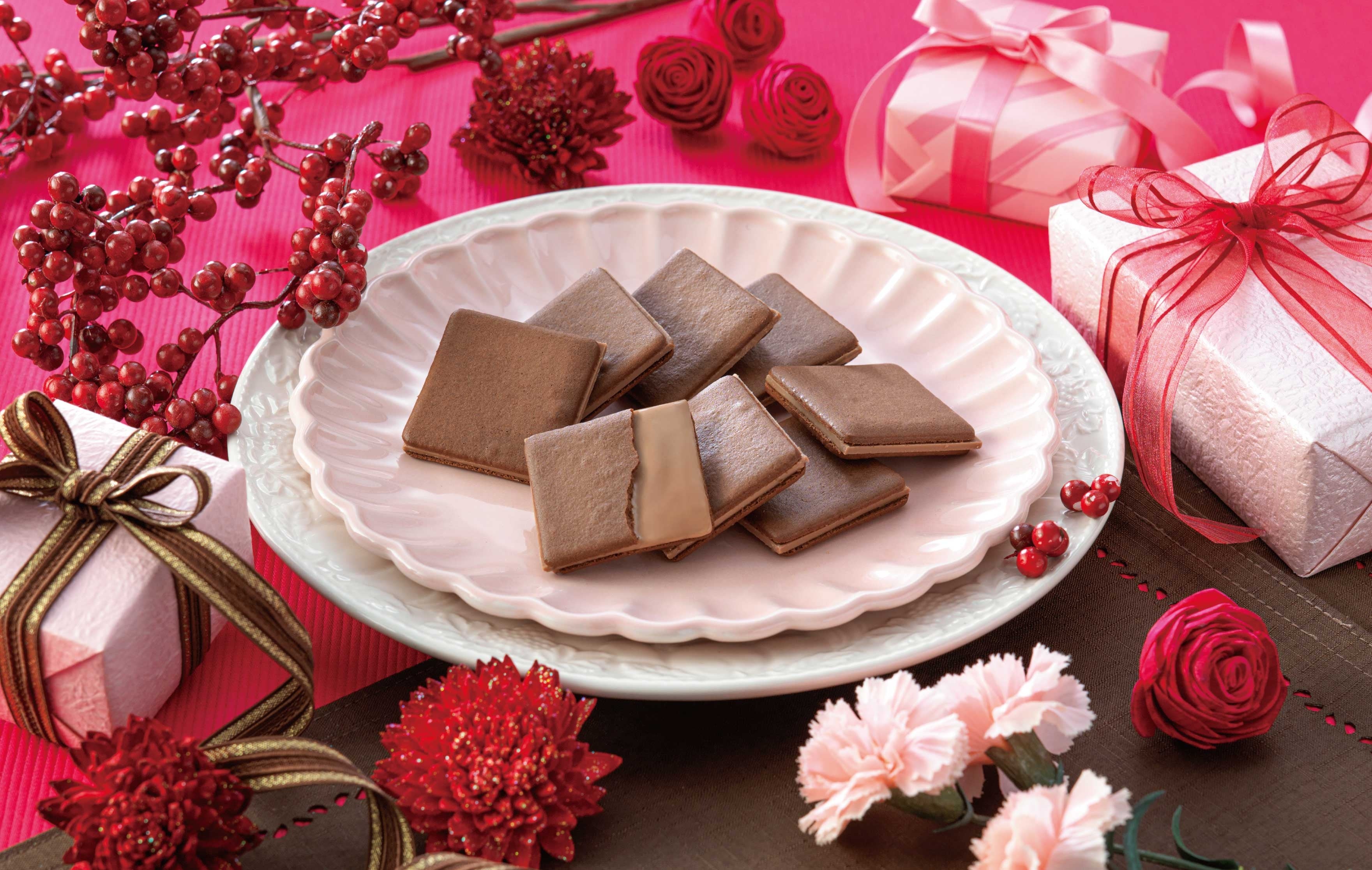 ほろ苦いココアラングドシャは軽やかな食感。 まろやかな口どけのミルクチョコプレートを挟んで上品な甘さに仕立てました。 コンディトライ神戸のロングセラー商品です。