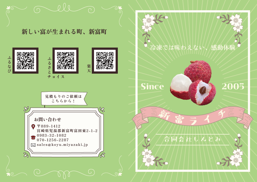新富町ふるさと納税返礼品として人気のライチを始め、各種フルーツを展示いたします。