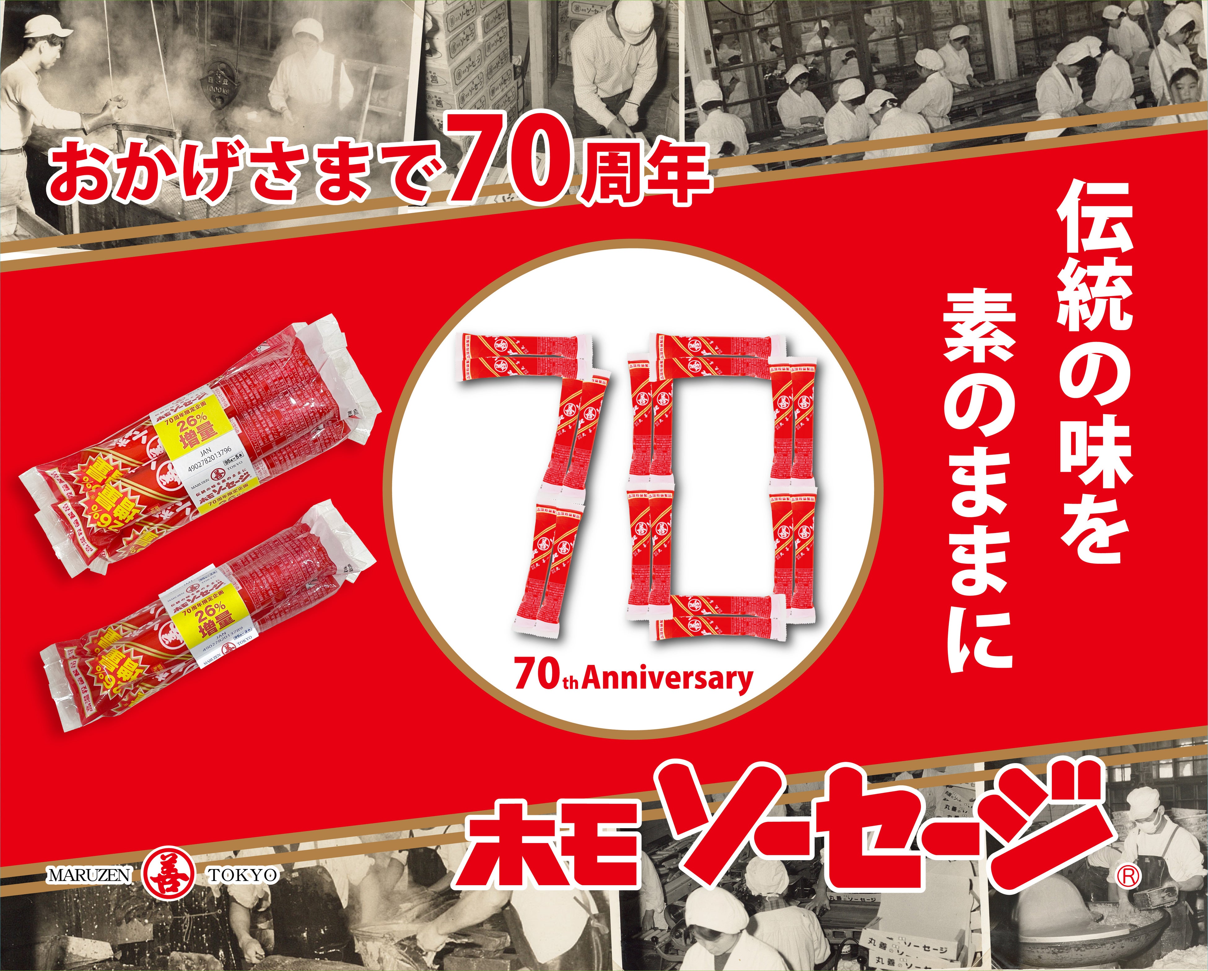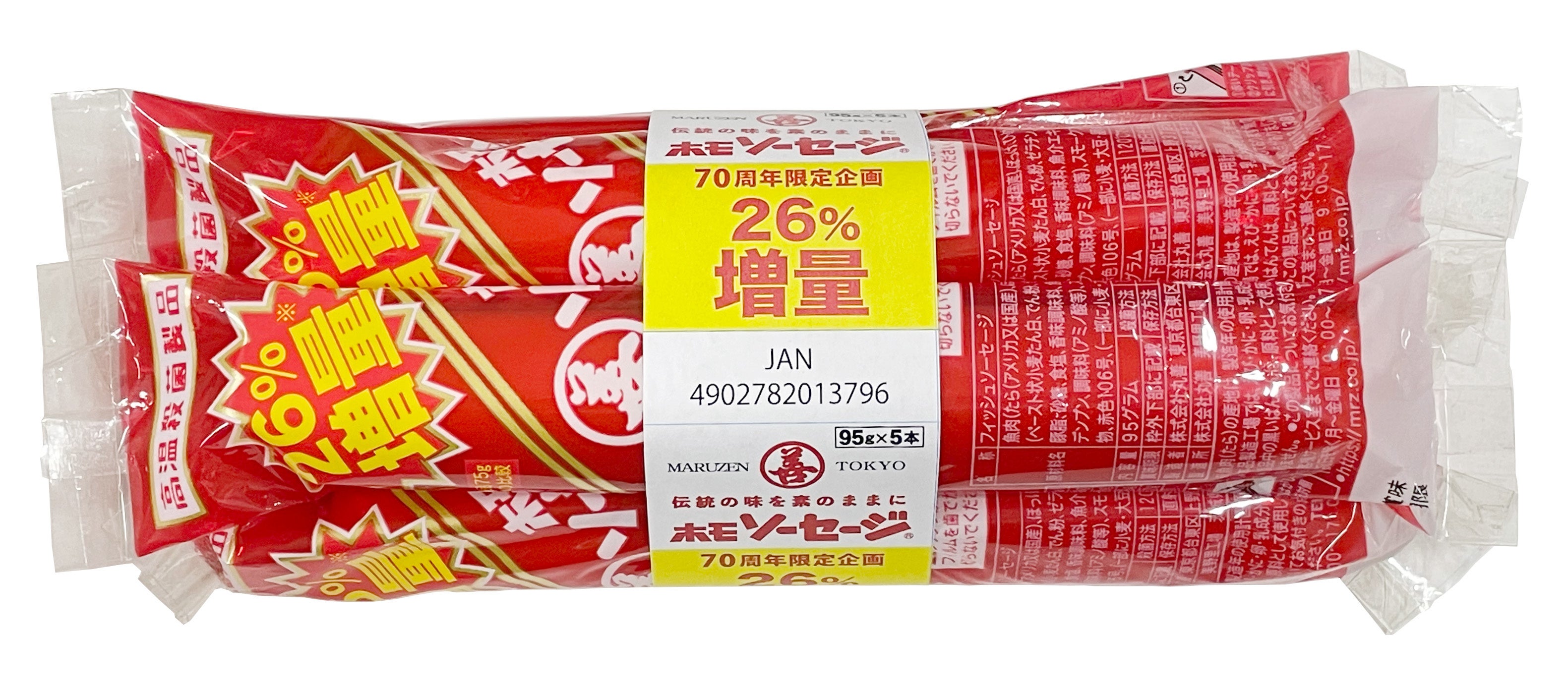 1954年の発売よりおかげさまで70周年を迎えたホモソーセージですが、今日までの感謝を込めて、期間限定の増量キャンペーンを実施いたします。