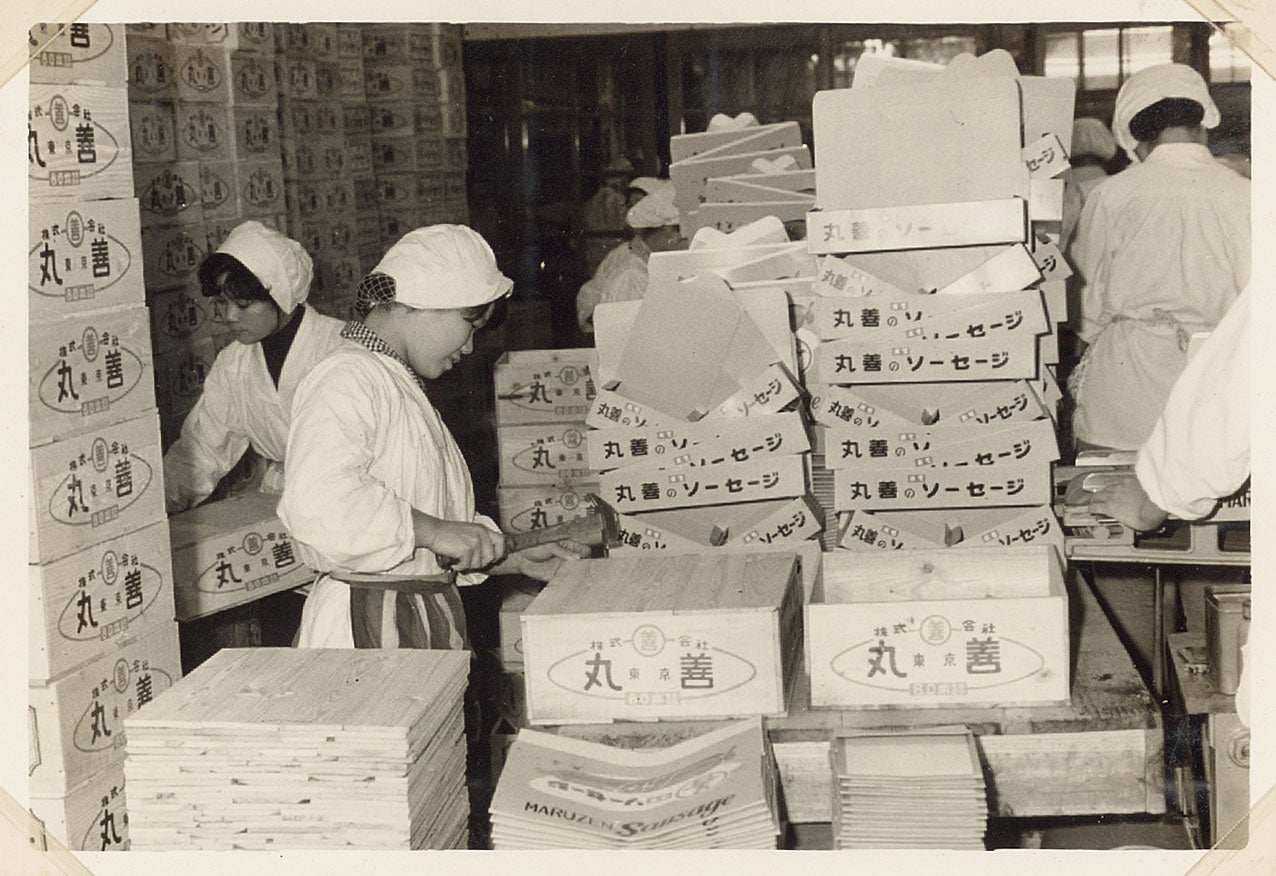 1954年(昭和29年)、丸善は鮪を主原料とした魚肉ソーセージの製造を開始しました。当時の調味方法は、現在にも継承されており、香辛料をなるべく控えめにし、魚の味を活かした味付けを守り続けています。
