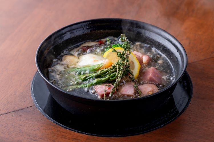 自由にトッピングをお選びいただき、卓上のIHヒーターでアヒージョをお楽しみいただけます。