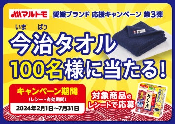 本キャンペーンは、キャンペーン応募サイト(https://get-cp.jp/ehimeouen3)にアクセスいただき、マルトモ公式LINEにお友達登録をし、対象商品を購入した際のレシート画像を送信して応募すると、愛媛のブランド「今治タオル」のフェイスタオル2枚セットが抽選で100名様に当たります。この機会に、長く愛され続けている「新鰹だしの素」をご使用いただければ幸いです。