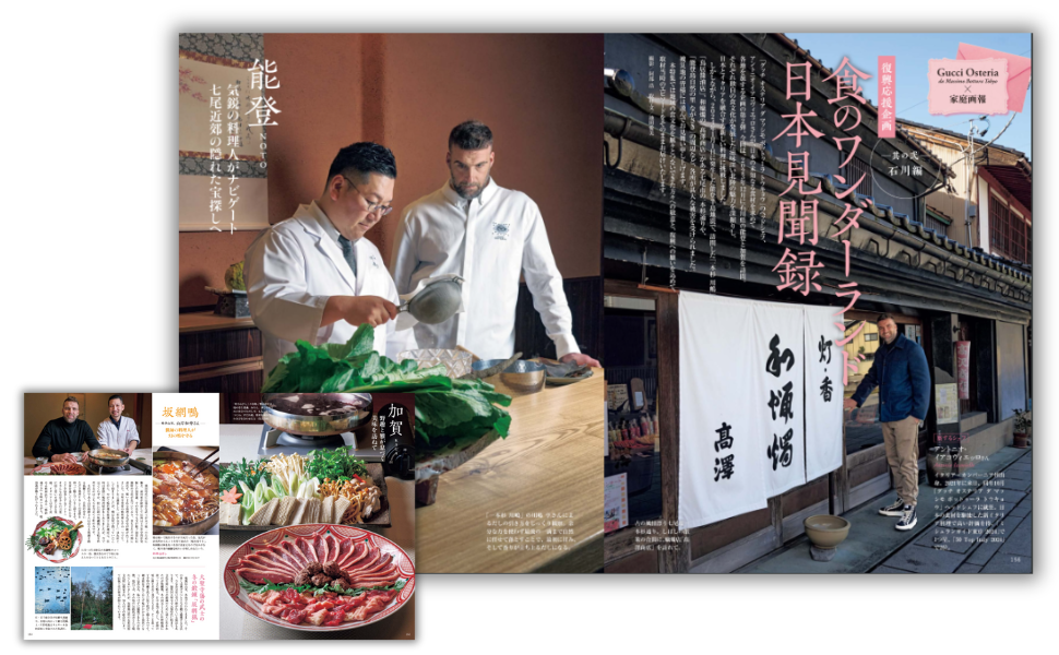 東京・銀座「グッチ オステリア ダ マッシモ ボットゥーラ トウキョウ」のヘッドシェフ、アントニオ・イアコヴィエッロさんが、日本の未知なる食材を求めて各地を旅する企画の第2弾。今回は、2023年12月に石川県の能登と加賀を訪問。それぞれ独自の食文化が発展した滋味深い北陸の魅力を深掘りし、日本とイタリアを融合する新しい料理に挑戦しました。しかしながら、2024年1月に発生した能登半島地震で、訪問先各所が甚大な被害を受けられました。被災地の皆様には謹んでお見舞い申し上げます。特集では地域の食文化を脈々とつないできた方々への敬意と、復興への願いを込めて、取材当時のエピソードをそのままお届けいたします。また、4月にはアントニオシェフが石川県へオマージュを捧げる特別料理を味わう、読者限定ランチ会を開催いたします(参加費の一部は災害義援金として寄付させていただきます)。