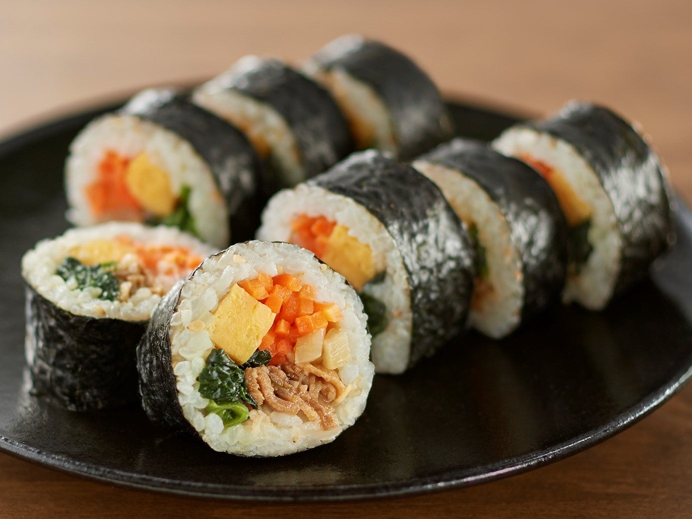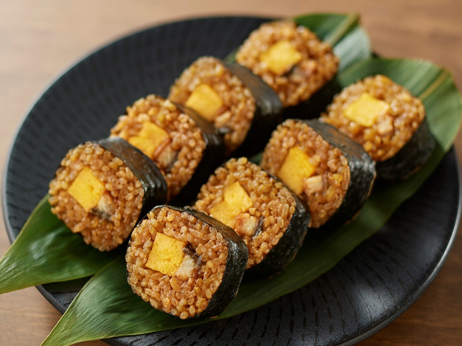 人気のキンパは、日本でも人気の韓国料理「プルコギ」、「チーズタッカルビ」、「サムギョプサル」を具材にしたものから、野菜をメインの具材にした野菜ナムルのキンパも用意しました。「プルコギ」、「チーズタッカルビ」、「サムギョプサル」は、それぞれ牛、鶏、豚の3種類の肉や、ほうれん草、にんじんなどの野菜が豊富に入っており、具材の旨みや食感を存分に楽しめます。「野菜ナムル」は、黒米入りご飯や、彩りのよい野菜で見た目も楽しめる仕上がりになっています。うなぎ巻き、たまご巻きは、う巻きに着想を得て1つに合体した「うな玉巻き」になり、新しく登場します。カットしてあるため、手軽にすぐ食べることができます。