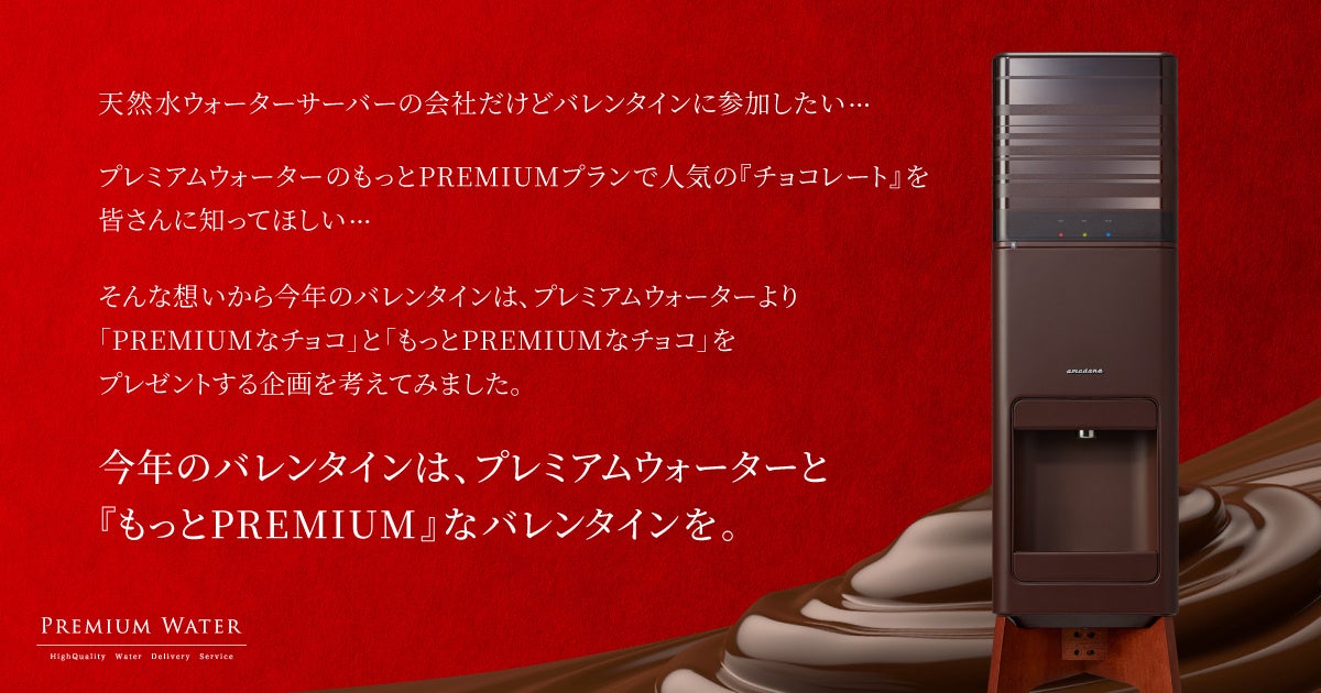 毎年世の中が盛り上がるバレンタイン。お水の会社であるプレミアムウォーターはバレンタインとの関わりが薄く、なかなかバレンタインには参加できませんでした。プレミアムウォーターでは「今年こそバレンタインに参加したい」という思いから、弊社の取扱製品であるamadanaグランデサーバーの“チョコレート”カラーに着目しました。amadanaグランデサーバーに“チョコレート”カラーがあるなら、プレミアムウォーターもバレンタインに参加できるのではないか。そのような気づきから、皆様に日ごろの感謝を込めて、初めてのバレンタイン企画であるプレゼントキャンペーンを実施いたします。