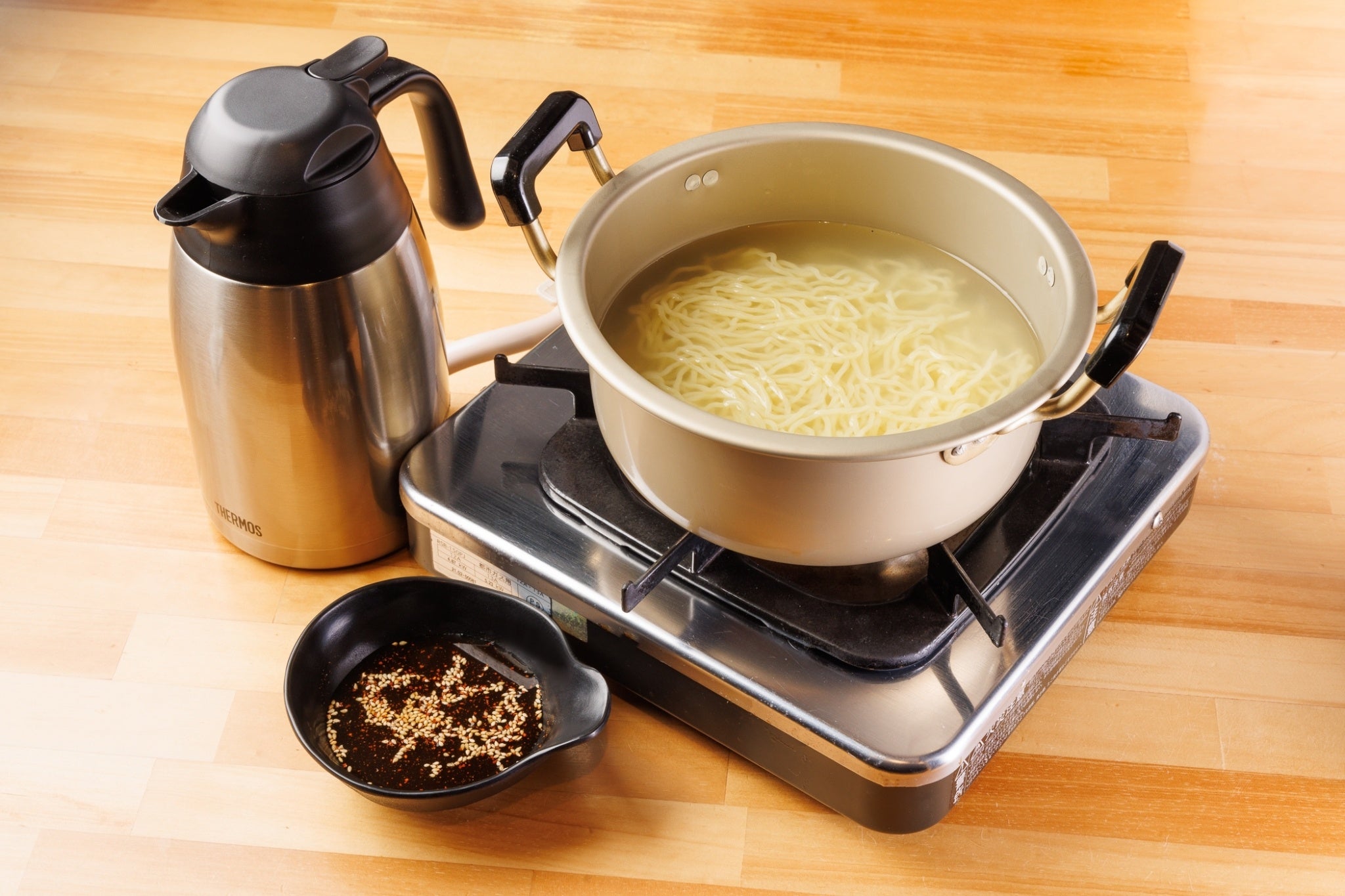 ジンギスカンを楽しんだ後に、そのツケだれをほうじ茶で割って、中華麺をつけ麺にしてお召し上がりいただきます。