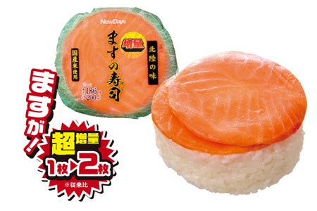 ●今回の「うれしい増量フェス」では、従来比40%以上増量した「超増量商品」が登場!人気の「チョコづくし」や「スゴおに のり弁にぎりました」など前回実施時より対象商品数も増え、パワーアップして開催いたします。今だけお得!なNewDaysにぜひご来店ください!