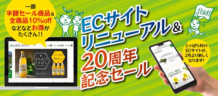 2月1日(木)~2月15日(木)の期間中、北山村公式オンラインショップ「じゃばら村」限定でリニューアル記念セールを実施。
