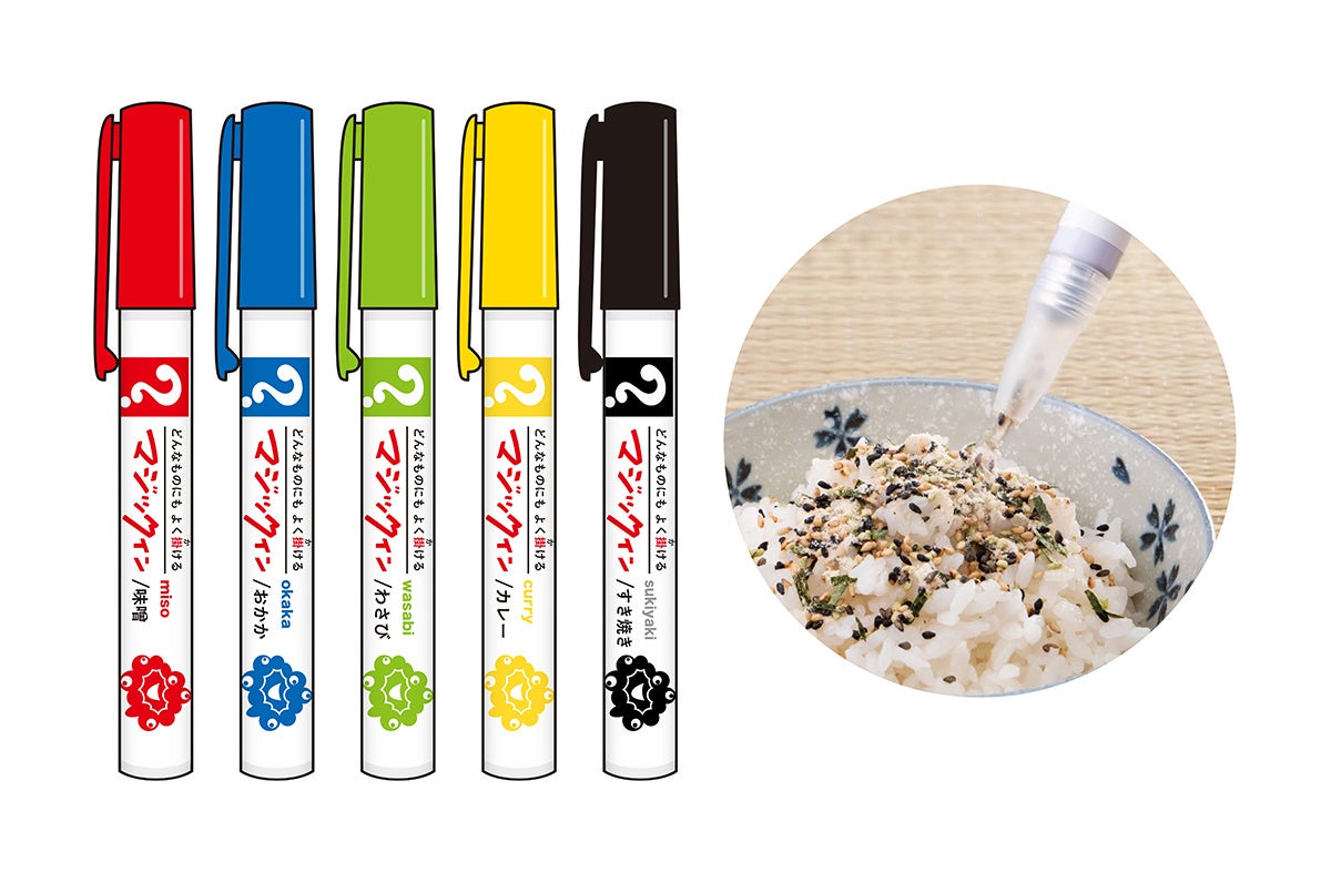 ◎マジックふりかけ(バリエーション全5種:味噌(赤)、おかか(青)、わさび(黄緑)、カレー(黄色)、すき焼き(黒))750円+税