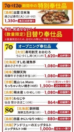 期間中の奉仕品から日替わり奉仕品まで、毎日お得な商品も! |