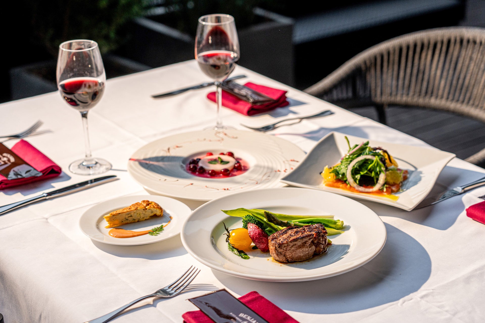 ベンジャミンステーキハウス 東京ガーデンテラス紀尾井町では春の訪れに合わせてテラスラウンジで季節を感じながらお食事を楽しんで頂ける特別コースをご用意しました。春の食材を使用したアミューズ、前菜、メイン、デザートの4品。まだ少し寒さの残る季節ではありますが、紀尾井町のテラスで一足先に春を楽しんでみてはいかがでしょうか。