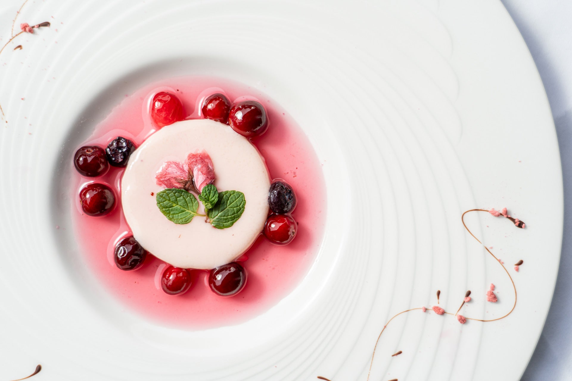 ●Dessert 桜のパンナコッタ、フランス産赤いベリーのソース