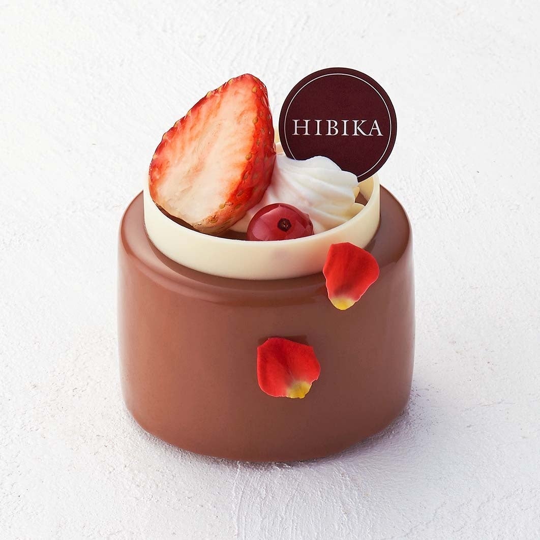 コクのあるショコラムースで甘酸っぱいフランボワーズのジュレを包み、ローズがほのかに香るフロマージュクリームを絞りました。バラの花をイメージした華やかなケーキです。バレンタイン期間限定で、ハート型のチョコプレートにお好きなメッセージをお入れいたします。