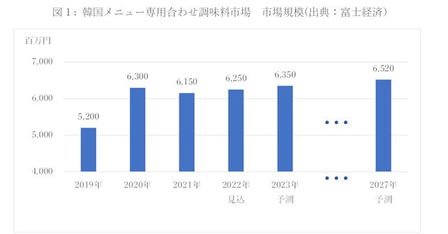 韓国メニュー専用の合わせ調味料は、2023年市場規模予測は2019年コロナ前の122%に伸長(図1)しています。家庭で韓国メニューを食べるシーンが増加しており、「韓国料理」への注目度はここ数年高い状況が続いています。