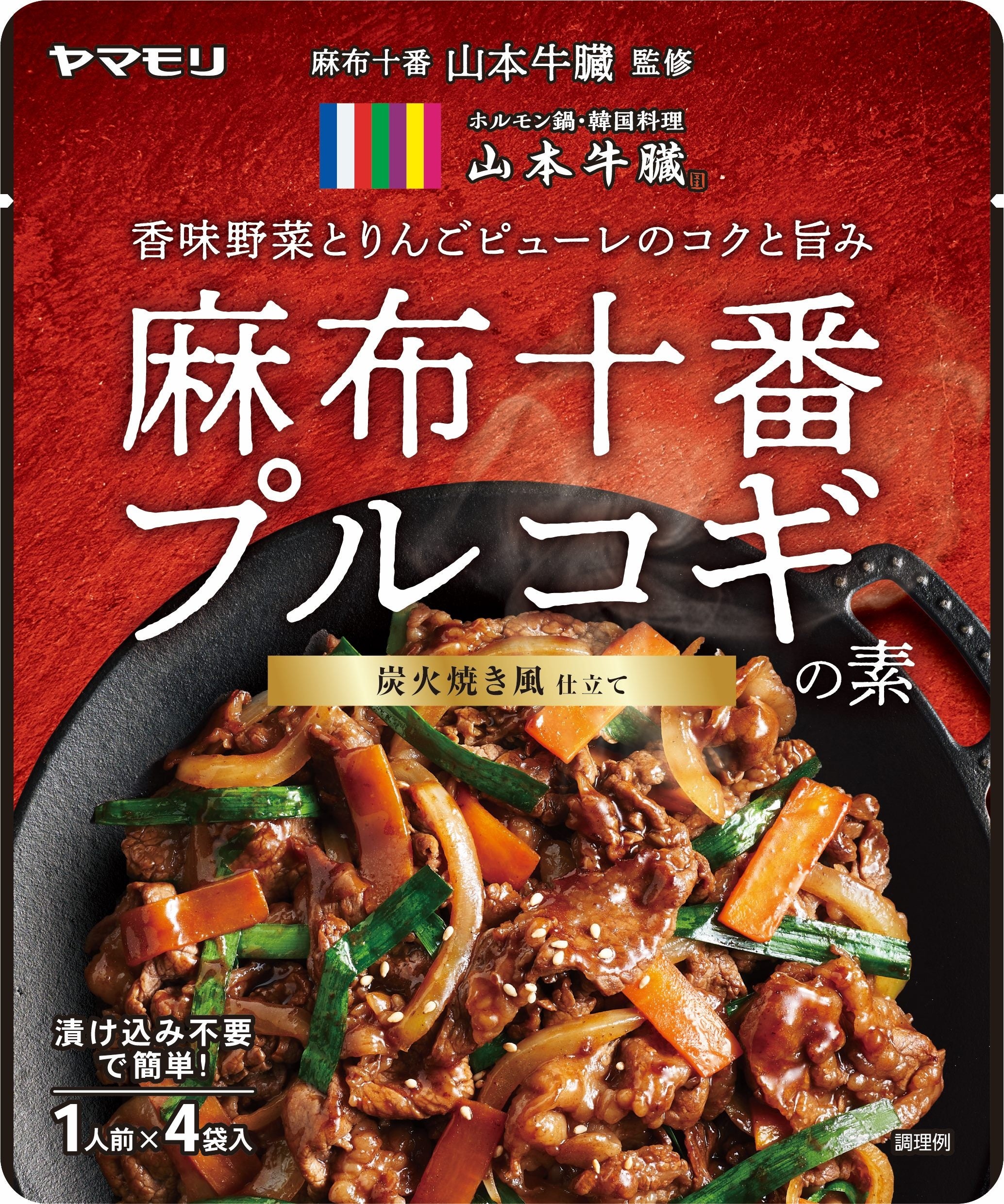 「麻布十番 山本牛臓監修 プルコギの素」は1人前の小袋調味液が4袋入っており、食シーンに合わせて1人前から4人前まで調整して楽しめます。メニューがパターン化してしまいがちなアウトドアシーンでの料理において、調味料や食材で荷物が増えてしまう場合でも、本品は小袋タイプなので荷物も増やさず常温で持ち運びができます。また小袋を韓国調理ソースとしてお使いいただくことで多彩なアレンジも可能です。「プルコギ風チャーハン」や「プルコギ風焼うどん」などのアレンジレシピにご活用いただき、BBQやアウトドアでぜひお楽しみください。