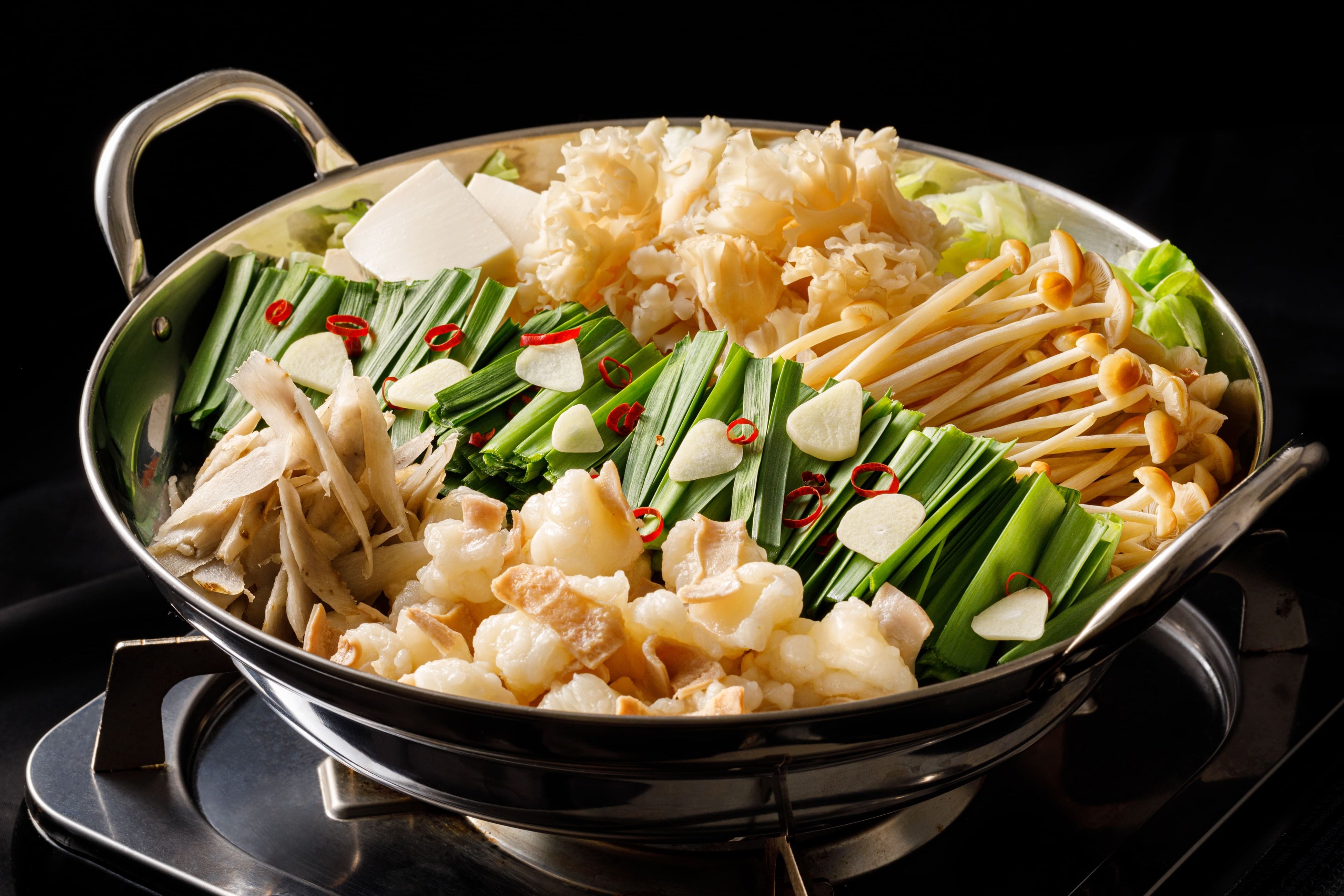 かつお昆布だしの旨味と鶏だし醤油の味付けと、花びら茸の食感、味えのきの香りの組み合わせが絶品!コクのある醤油味スープで牛ホルモンと野菜をおいしく食べる博多流もつ鍋をご堪能ください。