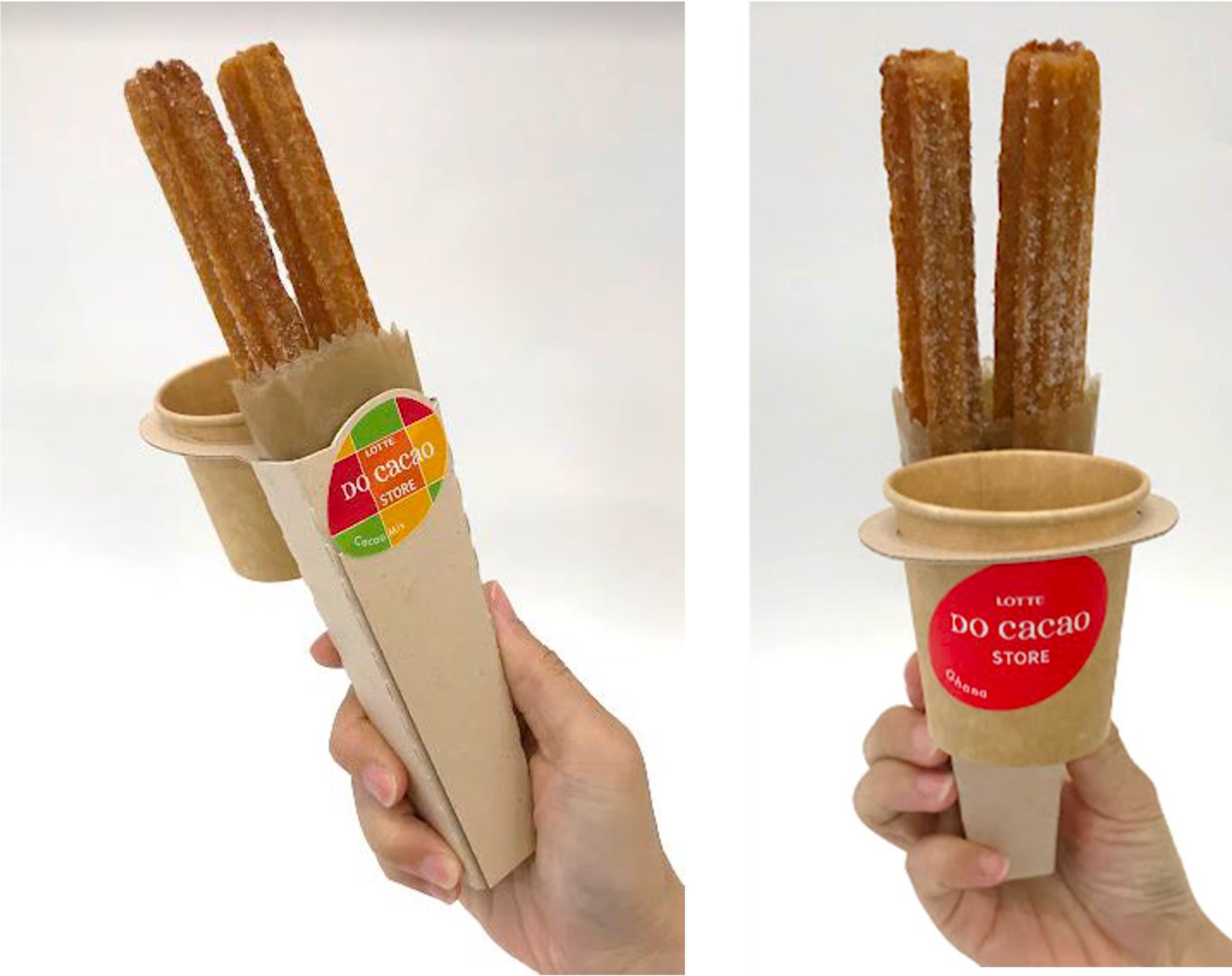 ガーナ、パプアニューギニア、インドネシアの産地の異なる3つのカカオから生まれたソースを特別にご用意しました。サクッとしたチュロスにオリジナルのかカカオソースをたっぷりつけてお楽しみください。また、カカオハスク(カカオ豆の皮)素材のオリジナル容器を使用し、環境にも配慮しています。