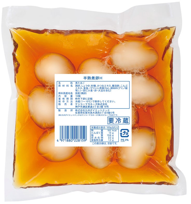 しょうゆをベースにかつおとこんぶの風味をきかせ、様々なメニューとなじみやすい味に仕上げた煮卵です。殻を剥く、味を浸み込ませるといった手間が省けます。