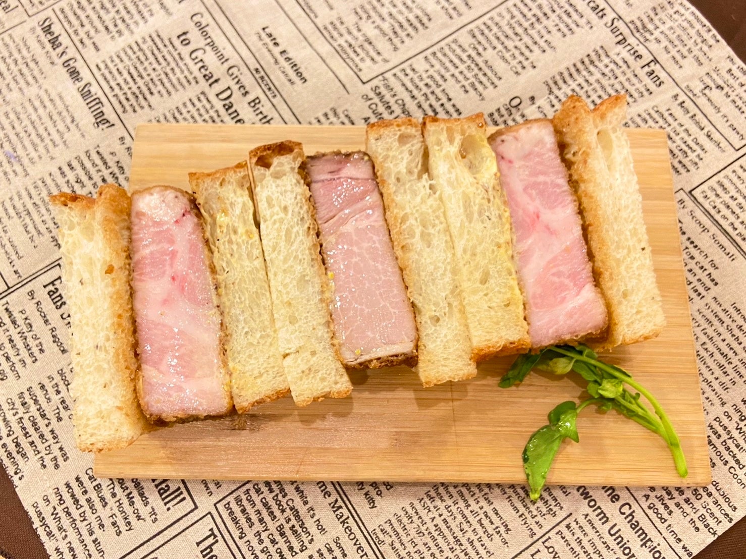 東京下町神田に店をおくパブリックベーカリーカフェ<COLAZIONE VARIO(コラッツィオーネ ヴァーリオ)>。「アボカドポーク石窯焼きカツサンド」はアボカドオイルを加えた特殊飼料と、放牧スタイルで育った〈アボカドサンライズポーク〉をベーカリーならでは石窯のオーブンでじっくり調理。さらりとして甘みがある脂身を閉じ込めた肩ロース肉に、薄い衣をまとわせ米油で揚げたカツはヘルシーな仕上がりです。蒸しキャベツと北海道産白口浜真昆布のうま味、豆乳・玄米を練り合わせた特製食パン〈真昆布UMAMI食パン〉に挟んだ、特別なカツサンドをぜひご賞味ください。