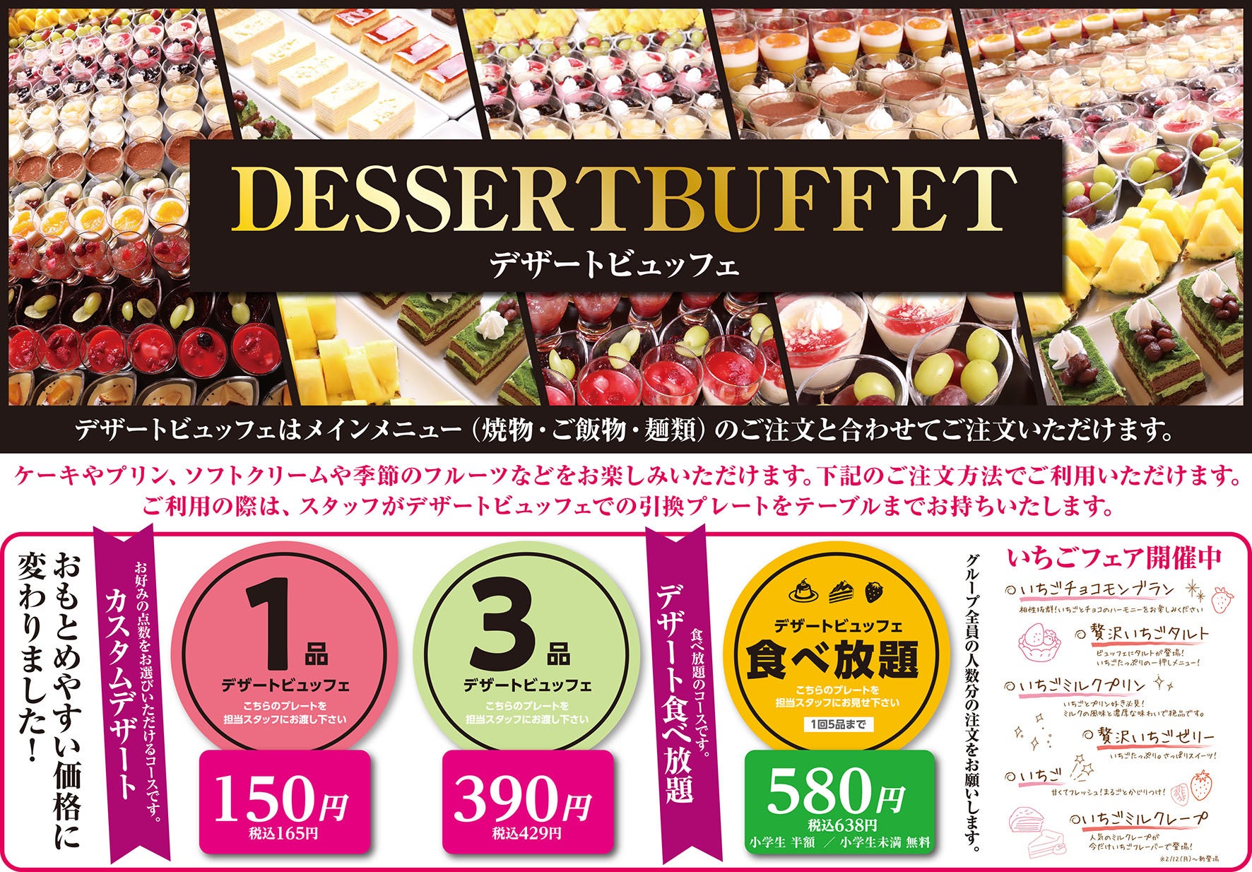 ※デザートビュッフェは、メインメニュー(焼き物・ご飯物・麺類)のご注文と合わせてご注文下さい。
