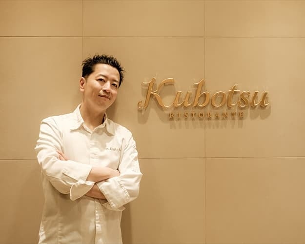 1983年生まれ。 福岡県出身。 2003年にひらまつに入社後、 東京・代官山「リストランテASO」で研鑽を積み、 2009年に副料理長に就任。 2011年「リストランテASO 天神」オープンに伴い福岡に異動。 2014年、 同店料理長に就任。 2018年1月、 自身の名を冠する新店「リストランテKubotsu」料理長に就任。