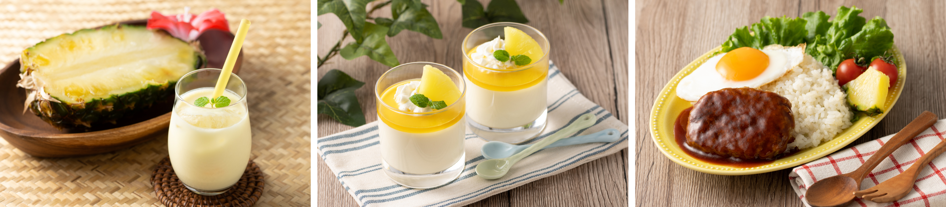 日本の主要生産地として人気の高い沖縄県産のパイン果汁を使用。沖縄県産のパインは完熟してから収穫するため、糖度が高いことが特徴です。その中でも酸味と甘さのバランスが良くジューシーな果汁を使用しています。また、容器にはアルミパウチを使用し、素材のおいしさ、品質をそのまま保持させています。