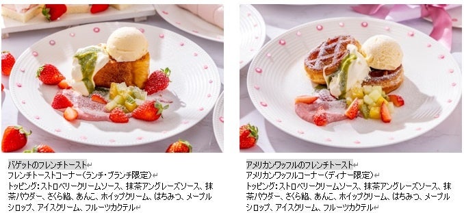 また、TV情報番組で紹介され、さらに人気上昇の「フレンチトースト」は、今フェアではホイップクリームの他、ストロベリークリームソース、抹茶アングレーズソース、さくら餡、あんこを添え、和風アレンジもできる一品です。いつもと違う味と見た目もお楽しみいただけます。