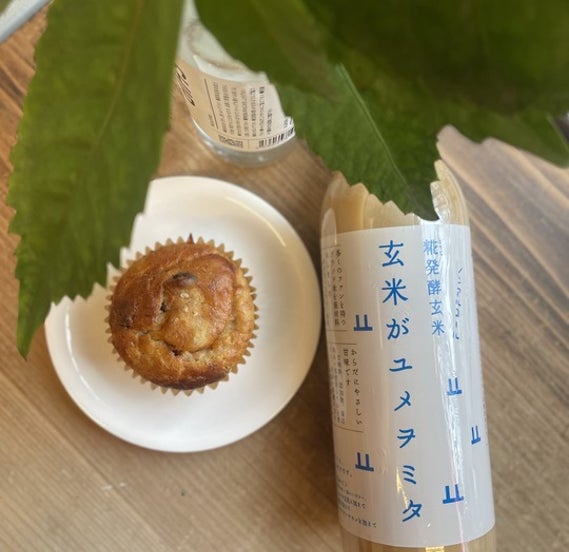 能登で自然循環型農法で育てられた玄米を使用した玄米甘酒を使った優しい甘さのマフィン。被災された生産者さんへの支援も兼ねています。