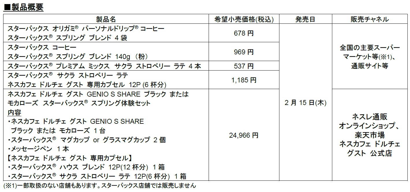 「スターバックス® スプリング ブレンド」製品と「サクラ ストロベリー ラテ」製品は、以下のサイトで販売します。