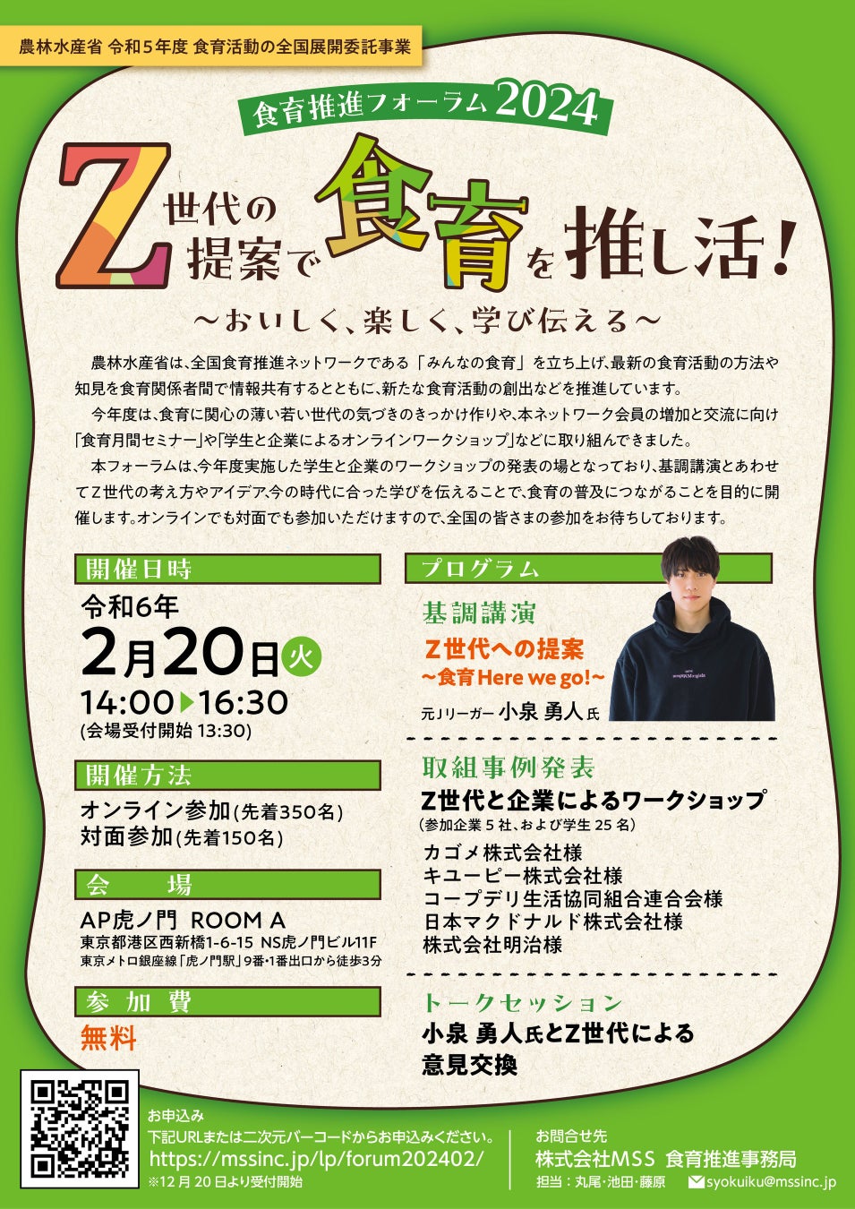令和6年2⽉20⽇(火)に「食育推進フォーラム2024」(株式会社MSS受託)が開催されます。