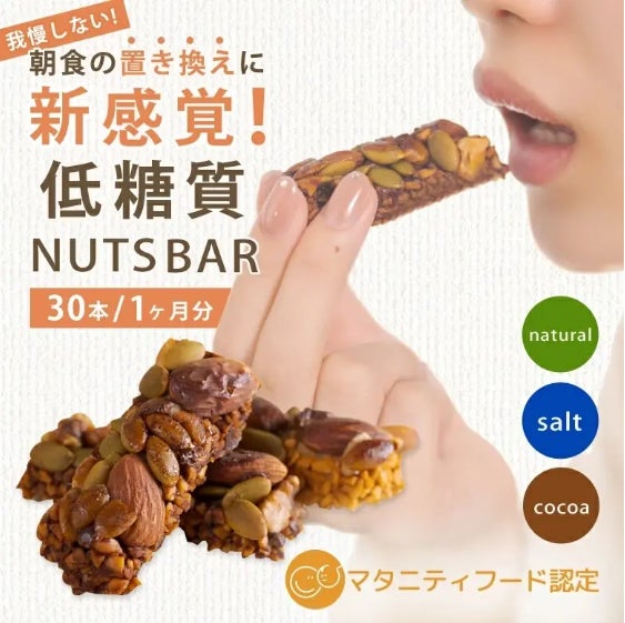通常、ナッツやグラノーラなどを固めるには、砂糖・水あめ・小麦粉・バター・チョコレート(ココアバター)を用いますが、これらの代わりに独自の液体蒟蒻素材を使用することで、糖質や脂質などの余分な栄養や甘みを添加することなく、ナッツそのものの味と栄養を活かし、新しい食感のみを付与したスナックの開発に成功しました。