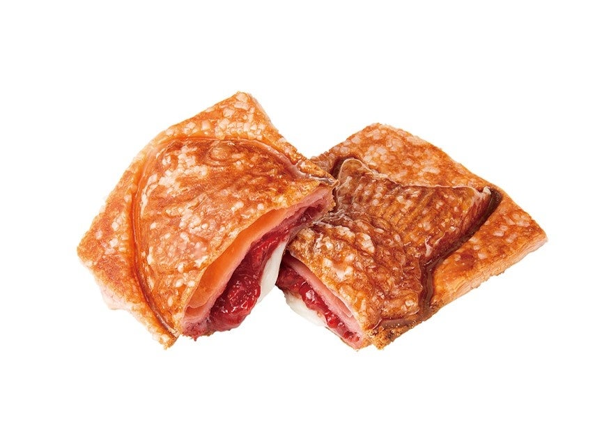クロワッサンたい焼ファン待望、 “プレミアム商品” の新作で、“福岡県産あまおう” の果肉を贅沢に使用し、その食感と味わいを感じていただける自信作です。