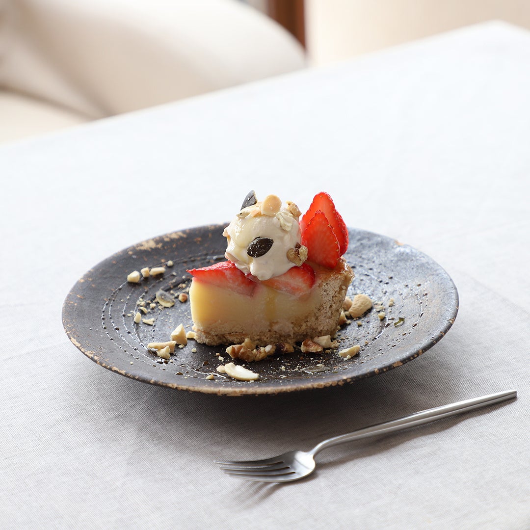 スペルト小麦とオートミールをベースにつくったさくさくのタルト生地に卵・乳製品不使用のカスタードクリームと甘酸っぱいいちごをたっぷりと合わせました。