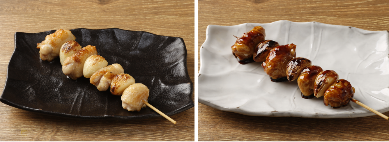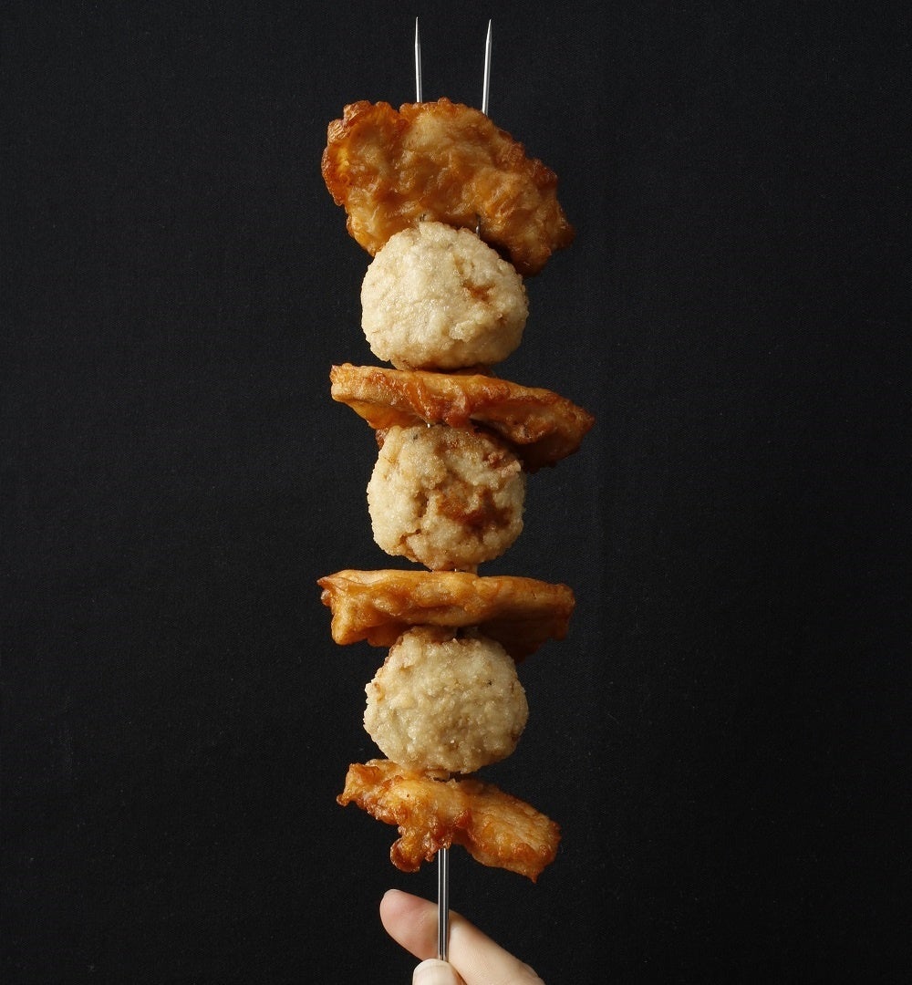 ファンの多い大玉のつくねを揚げてチキンボールに!それをナゲットと合わせて焼き鳥屋らしく串に刺しました。