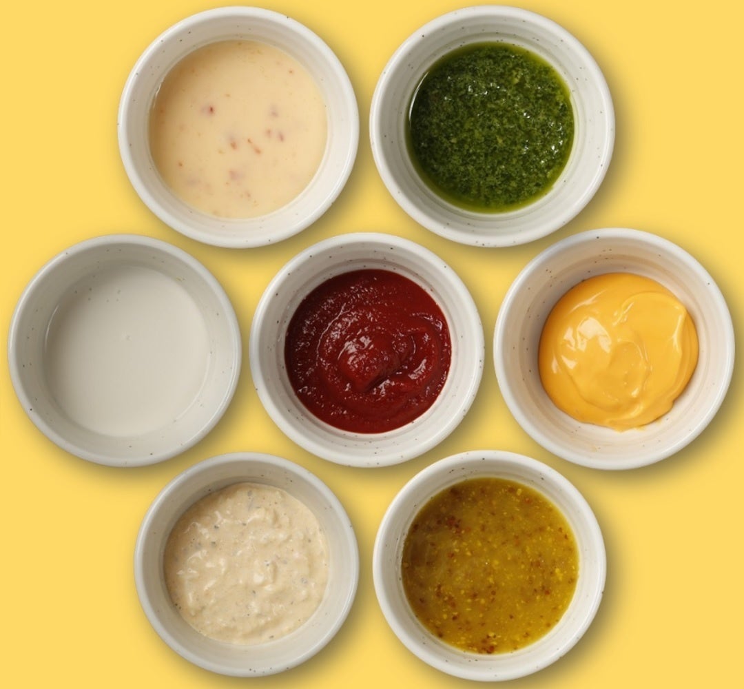 (チリマヨ・バジルソース・ハニーマスタード・タルタルソース・バーニャソース・ケチャップ・チーズソース)