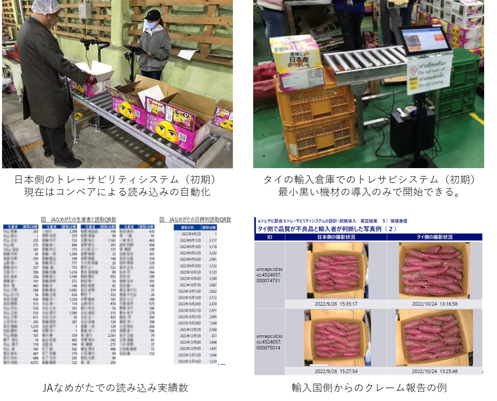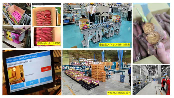 2022年の農水省 品目団体輸出力強化緊急支援事業「だいきぼかんしょ輸出確立実証事業」のトレーサビリティ部門では、北海道に作った国内最大級の選果場や、茨城県(JAなめがた)で出荷 情報を撮影し、輸入国側(タイ)で行いました。