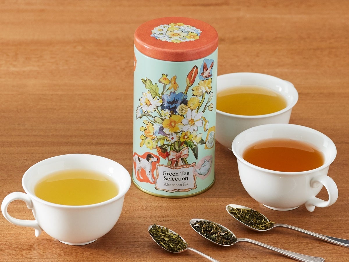 国産バターを使用した「3種のバターサブレ 苺&レモン&プレーン」、桜のフレーバーティーなど3種類のグリーンティーを詰め合わせた「グリーンティーセレクション」、お花見やピクニックにおすすめの「スプリングティータイムバスケット」の3つのギフトは、コラージュ風にあしらった花束のイラストが印象的なデザイン缶入りで、アフターユースも可能。大切な方への贈り物はもちろん、自分へのご褒美にもおすすめです。
