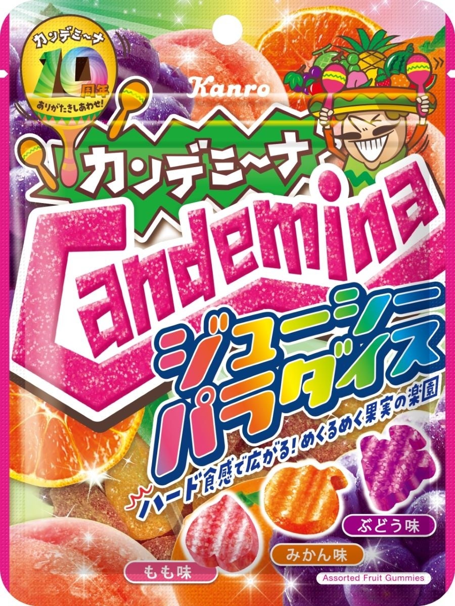 発売から10周年を迎えた「カンデミーナ」は、ユニークな形状でハードな食感を提案する、エンターテインメントグミブランドです。2022年にはブランド年間売上30億円を突破し、2023年には食品産業新聞社主催「第53回食品産業技術功労賞 商品・技術部門」を受賞するなど、カンロにおいてはピュレグミに次ぐグミブランドとして、若い世代やビジネスパーソンを中心にご好評いただいております。