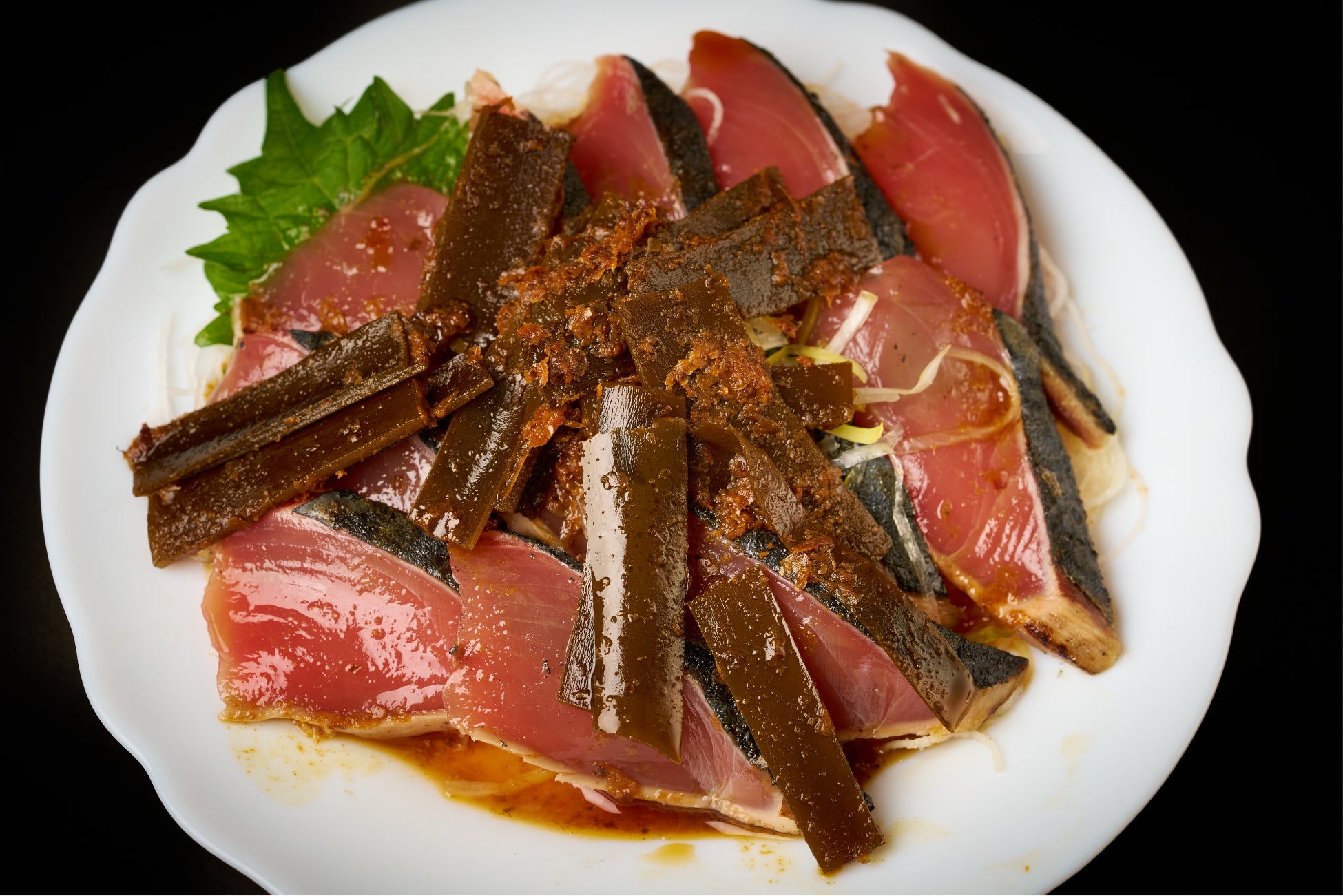 最高級鰹節「本枯節」との相性は抜群です。鰹の旨味が凝縮された究極の鰹のタタキを堪能ください。