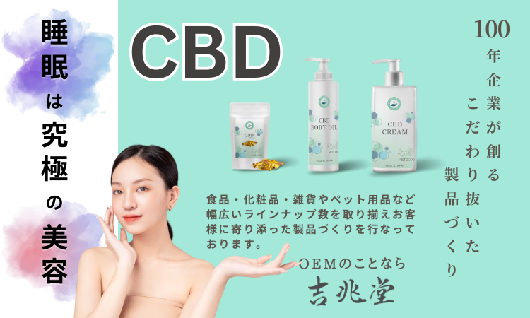製法特許を取得している、”吉兆堂水溶性CBDパウダー”をはじめ、CBD原料・OEM製品をご提案をさせていただきます。企画や製品についての疑問も、専門知識を持つ社員がしっかりとサポートいたします。