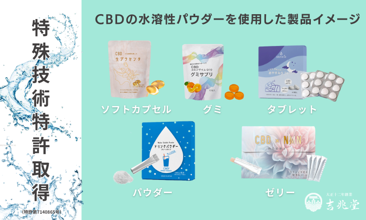 特殊特許を取得いたしました「吉兆堂CBD水溶性パウダー」を原料とした製品や