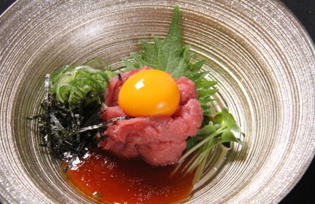 定番の「馬肉ユッケ」は、口に入れた瞬間トロリととろけてしまう美味しさで、リピートNO1の人気商品です。細切りにした馬肉を当店自慢の特製ダレと卵黄をまぜてお召し上がりください。店主厳選の馬肉でつくるユッケは、濃厚な甘み、柔らかな肉感、旨みを一度にお楽しみいただけます。