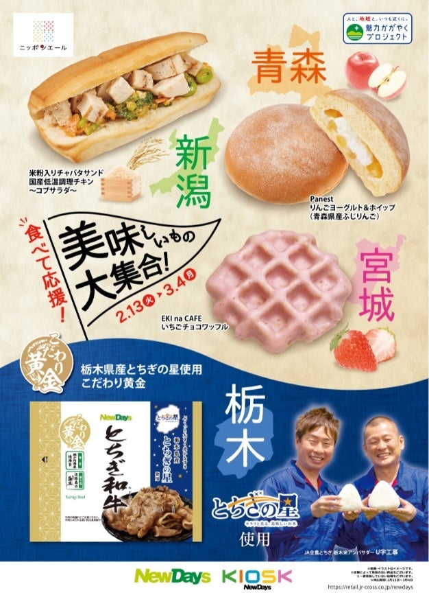 NewDaysの「魅力かがやくプロジェクト」では、NewDaysが持つ首都圏の販路とモノづくりネットワークの強みを活かしながら、地域産品を活用した商品開発・販売により地域の魅力を発信します。それにより新たな雇用の創出や人の移動の促進を図るなど持続可能な「地域創生」を推進していきます。今回は、JA全農グループの原材料を使用し、地域産品の応援とブランドを強化する商品開発を実施いたしました。