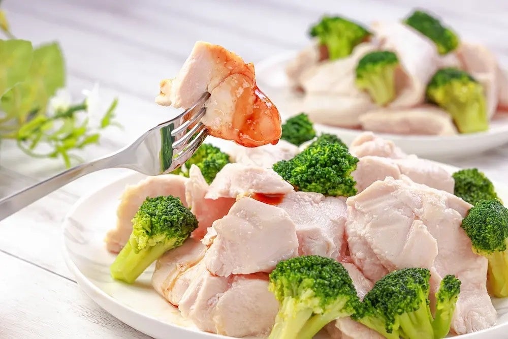 ⽜・豚・鶏と⾷⾁の中でも圧倒的に⾼たんぱく低糖質な鶏胸⾁と、ビタミン・ミネラルバランスに優れたブロッコリーを素材とし、全国から数⼗種類以上取り寄せた中から厳選したものを調味料1g、調理時間1秒、加熱温度1℃単位でこだわった秘伝のレシピで調理しています。