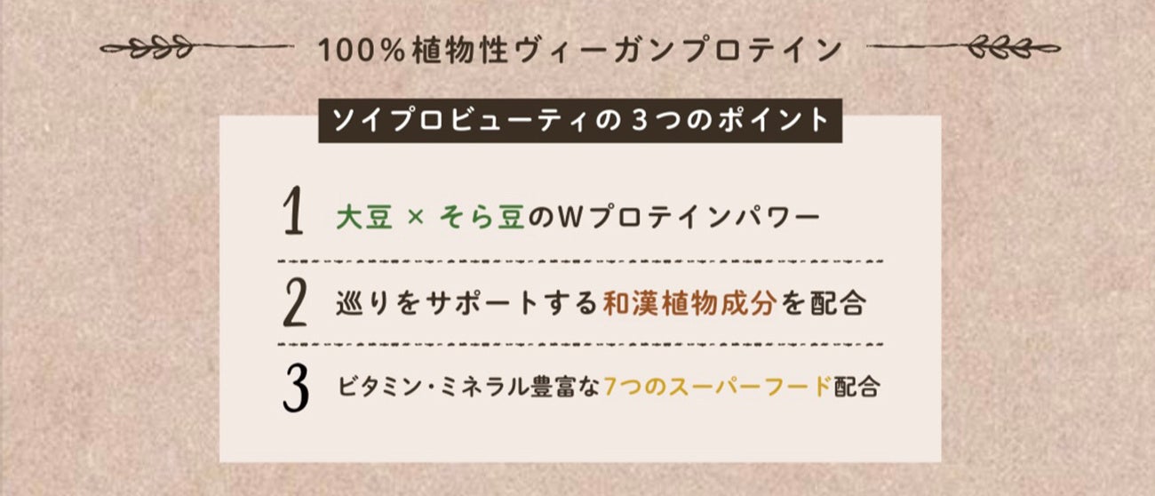 ソイプロビューティは、女性の美容と健康維持のための100%植物性のプロテイン