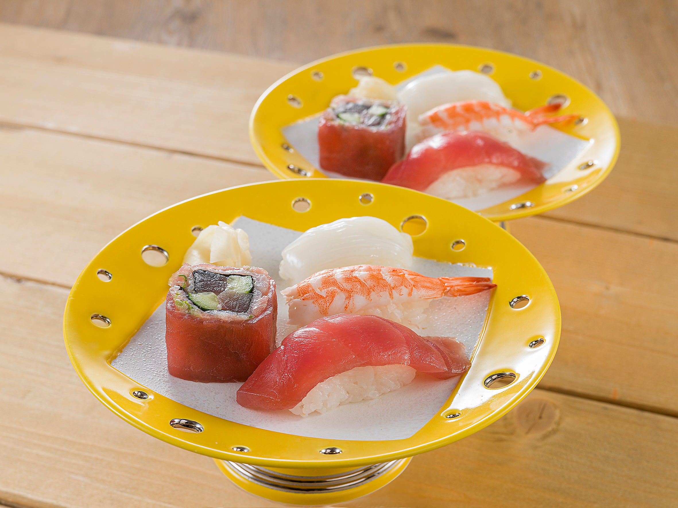 マグロにぎり&日替わりネタ2貫を相盛りにした贅沢な一皿。