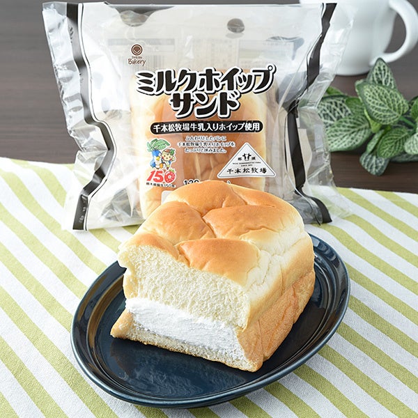 また、「ミルクホイップサンド(千本松牧場牛乳入りホイップ使用)」139円(税込150円)は、牛の食べる飼料、そのもととなる牧草、牧草を育てる土からこだわっている栃木県は那須千本松牧場の牛乳を使用したホイップクリームをサンドしたパンに仕上げました。